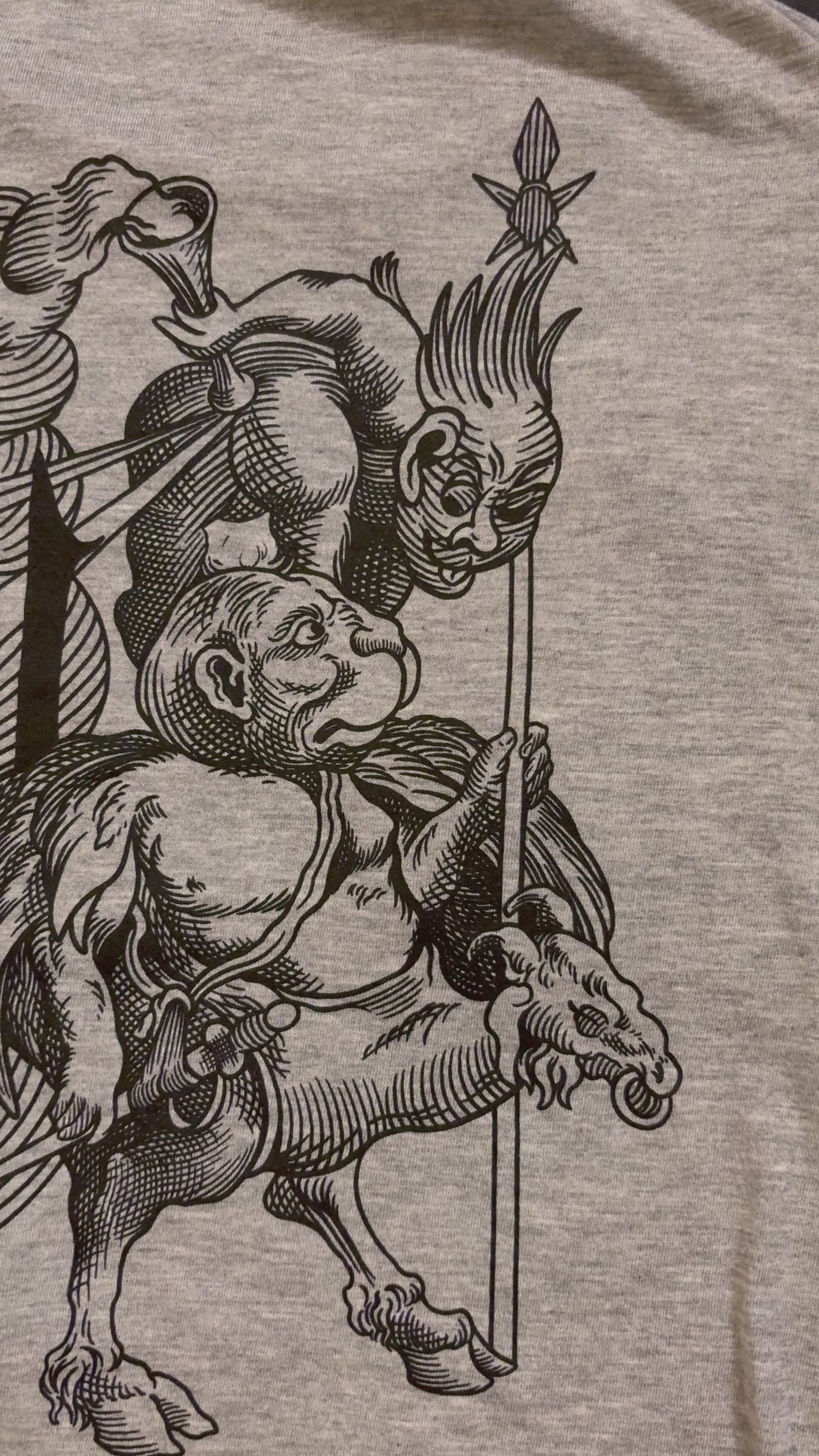 High quality screen print on polyester/cotton blend for cool comfort, moisture-wicking, and wrinkle resistance.